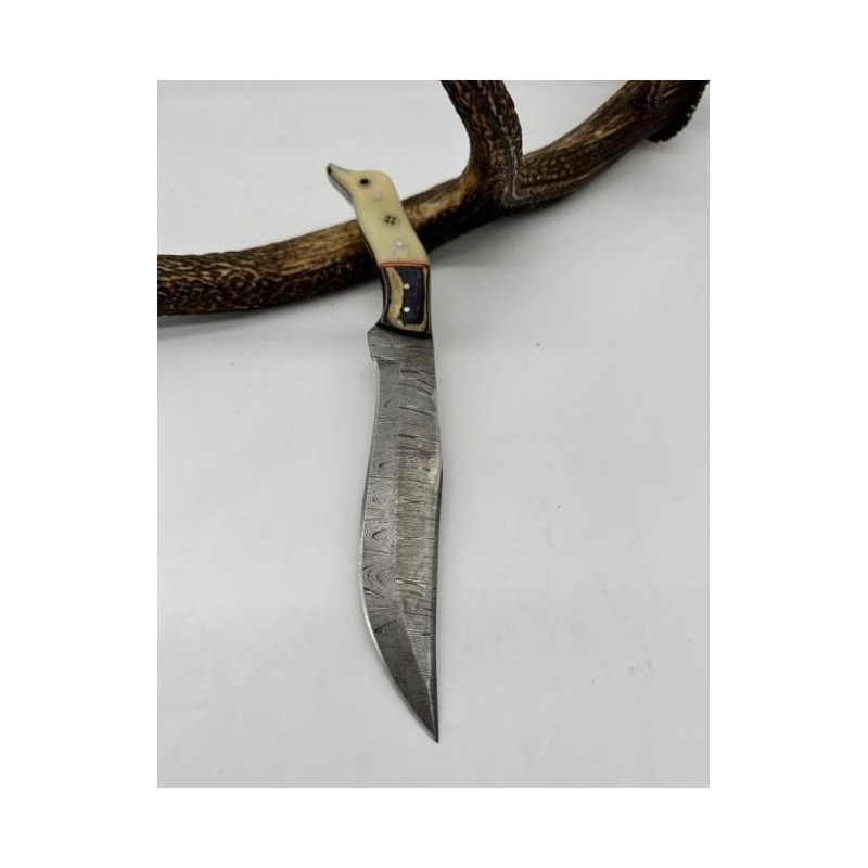 Couteau de chasse lame damas manche en os ref OS10