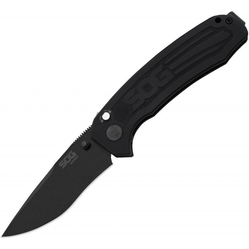 Ouverture assistée. 11,4 cm fermé. Lame à clip en acier inoxydable CPM S35VN avec revêtement TiNi noir de 8,9 cm. Poignée en aluminium anodisé noir. Goujon de pouce. Agrafe de poche. Trou de lanière. Système d'ouverture assistée SAT. Fabriqué aux États-Unis. En boîte.