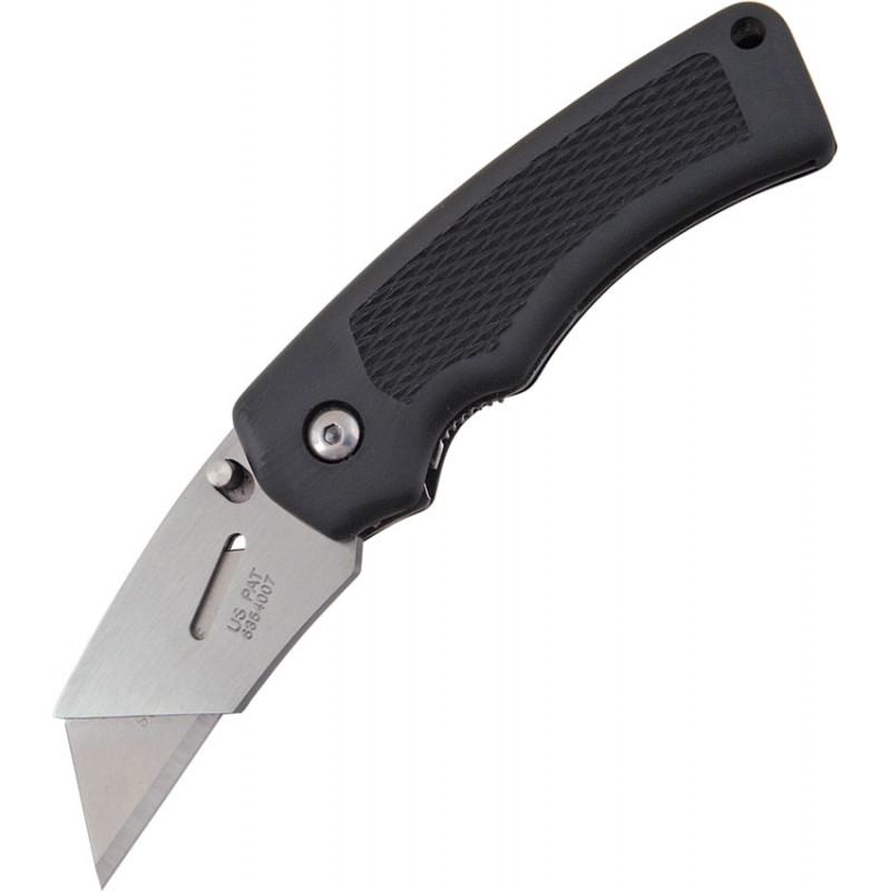 3 7/8" fermé. Peut contenir des lames utilitaires standard et de qualité entrepreneur. Retrait facile de la lame par pression et libération. Le verrou à ressort maintient la lame en toute sécurité. Poignées caoutchoutées noires avec clip de poche en acier inoxydable. Accrochez l'emballage.