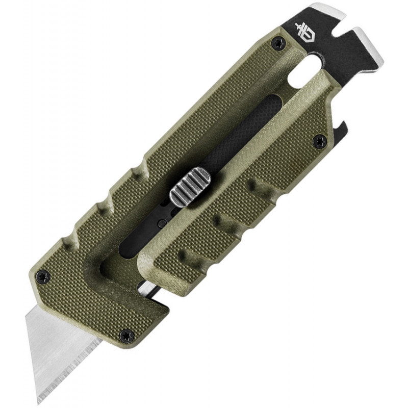 4,25" fermé. Poignée verte G10. Les outils incluent : Coupe-ceinture/cordon l Ouvre-bouteille l Barre de levier l Tournevis à tête plate l Boucle de lanière l Pince à dénuder l Petit tournevis. Extracteur de clous. Lame utilitaire remplaçable pleine grandeur avec verrou coulissant. Clam emballé.
