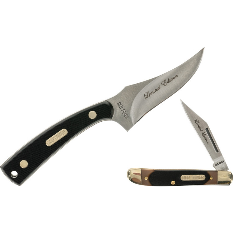 7" (17,78 cm) hors tout. Lame en acier inoxydable 7Cr17MoV au fini satiné de 3,25" (8,26 cm). Manche synthétique noir scié. Bouclier d'incrustation. Gravure à la lame. Comprend : Dossier Pal de 2,88 po avec lame à pointe clip en acier inoxydable satiné et manche synthétique brun scié. Mitres en argent nickel. Livré dans une boîte-cadeau. Gaine de ceinture synthétique noire. Emballé en palourde.