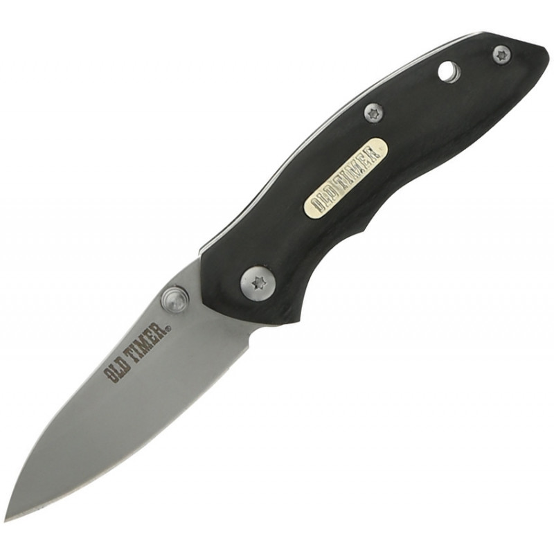Ancienne minuterie. Ouverture assistée. 3" fermé. Lame en acier inoxydable finition microbillage de 2". Manche en bois noir. Goujon de pouce. Trou de lanière. Bouclier d'incrustation. Clip de poche. Pack de suspension scellé sous blister.