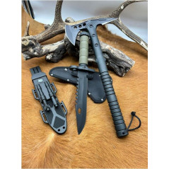 La poignée est faite de nylon léger et durable, boulonnée à la lame avec de grandes vis. Grâce à cela, le tomahawk tient dans sa main. La hache peut également être utilisée pour lancer.