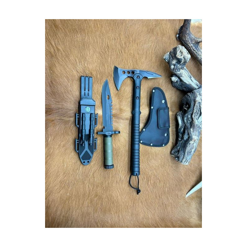 Hache de type Tomahawk Kandar. La hachette a été conçue pour ceux qui recherchent un outil léger et durable dont les dimensions permettent un transport facile. Il est excellent lorsqu’il est utilisé pour la survie, le tourisme et le camping, mais s’utilise également bien au quotidien, par exemple dans le jardin.