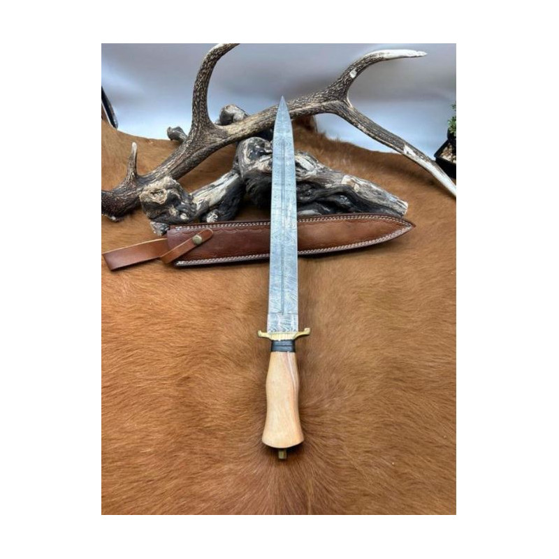 Belle dague lame damas 256 Couches manche Bois d'Olivier fab. artisanale